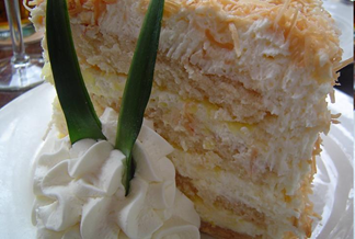 Fix up yellow cake mix by adding pineapple juice, oil, pineapple, and coconut. Drizzle the baked cake with rum and cream of coconut, then top with a tropical-tasting whipped topping.